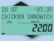 Die LCD-Bedieneranzeige mit zwei Zeilen für Texte mit bis zu 16 Zeichen und eine Siebensegment-Zeile mit 10 Stellen für die Betragsanzeige. Die Kundenanzeige ist auszieh- und drehbar.