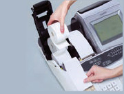 Thermodrucker mit 58 mm Bon- und Journalrolle. Druckt Grafiklogo und Wasserzeichen. Zeichen auf dem Bon können in doppelter Höhe, Zeichen auf dem Journal können komprimiert ausgedruckt werden. „Drop-In“-Papierladesystem für einen schnellen Rollenwechsel.
